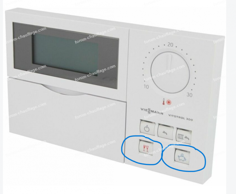 J'ai un comportement étrange depuis 1 mois, deux boutons de ma commande Vitotrol 300 ne fonctionnent plus (il s'agit du bouton réception et économie), par contre ils sont opérationnels depuis la chaudière à la cave (Vitodens 200-W) (cf photos) , ce qui n'est pas très pratique. Le reste des boutons sont fonctionnels à partir de la commande Vitotrol 300. (cf photo)