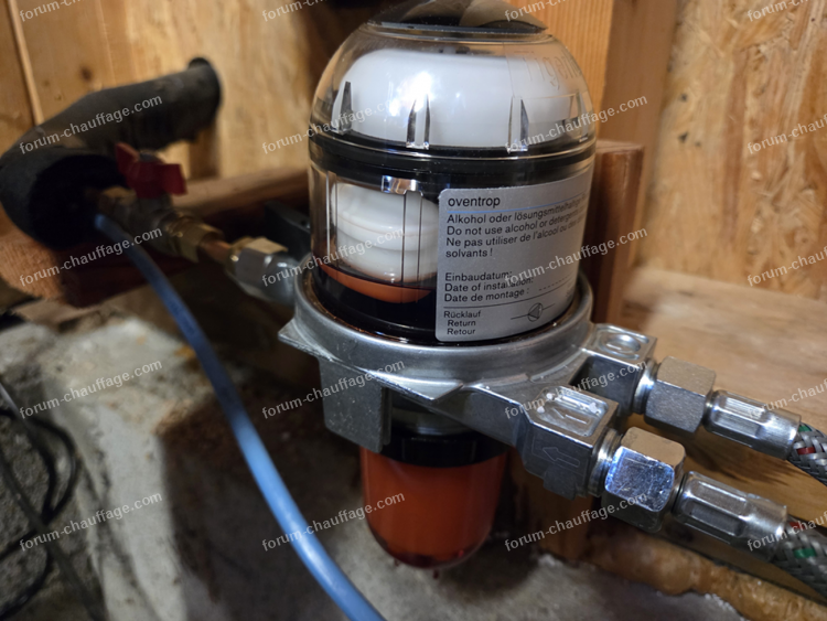 - Nous avons vérifié l'alimentation en fioul, changé le filtre et la canne de départ. Il reste actuellement 600 litres dans la cuve (la maison étant à 100 mètres, j'utilise toujours du fioul premium). Le niveau de fioul dans le pot de filtre ne bouge pas et il n'y a pas de bulles d'air.
