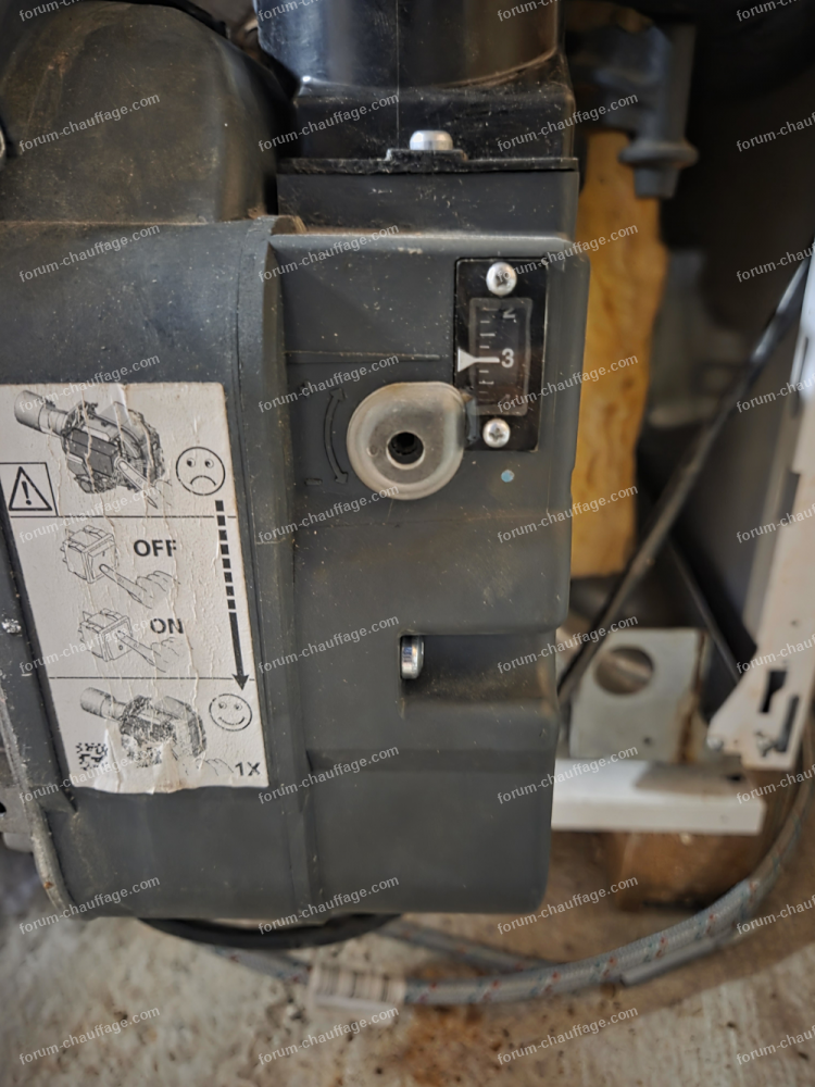 - Le réglage d'air du brûleur a été mis sur 5, alors que le réglage recommandé dans la notice de la chaudière est de 2. Je l'ai remis sur 4 et j'ai réussi à faire démarrer la chaudière, qui a fonctionné jusqu'à ce matin. J'ai mis le réglage sur 3 ce matin et j'ai réussi à la faire redémarrer ; elle fonctionne actuellement.