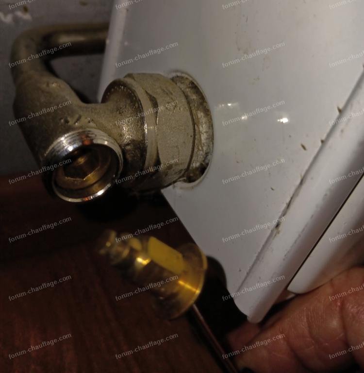 Je pense que le problème vient de la vanne sortie située en bas à gauche de mon radiateur.