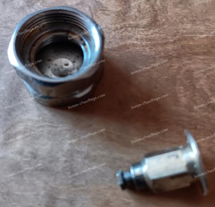 Il est équipé en entrée d'un robinet thermostatique, que j'ai enlevé pour agir sur la petite épingle, elle fonctionne correctement.