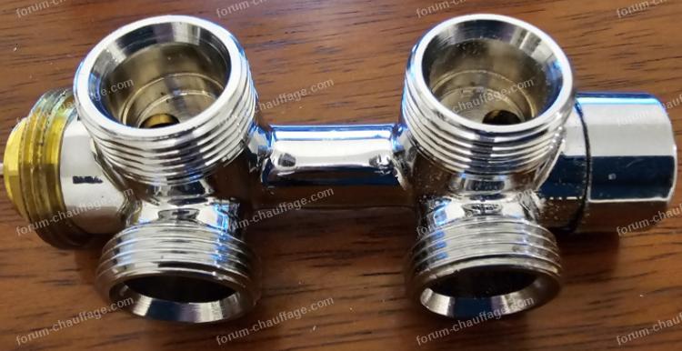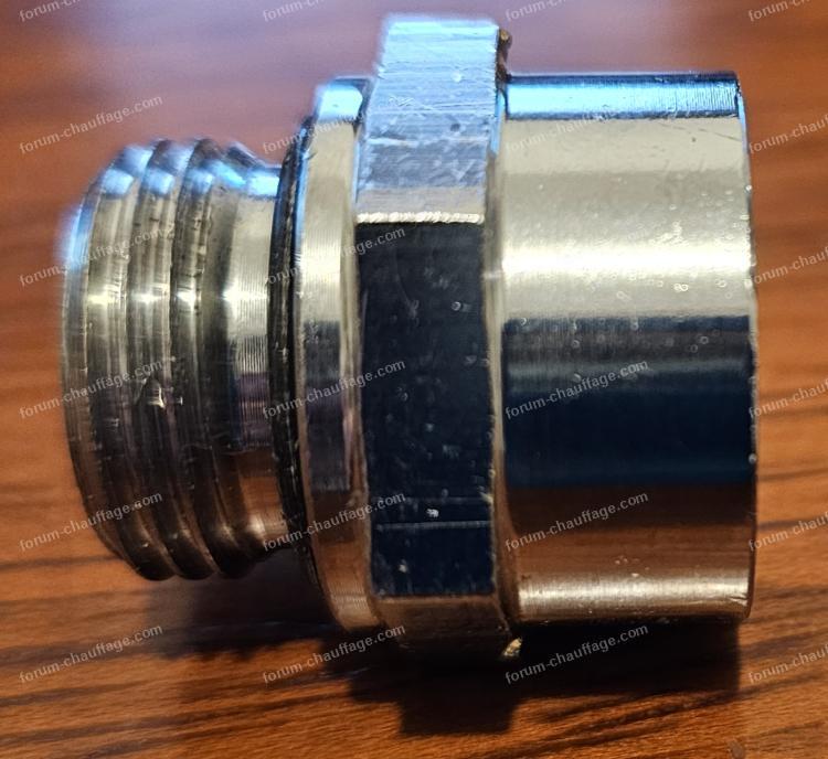 Mais... le jour où j'ai voulu le monter, je me suis aperçu que le mamelon vissé dans le corps du radiateur pour sa partie mâle et femelle coté T Thermostatique, n'était pas tournant.